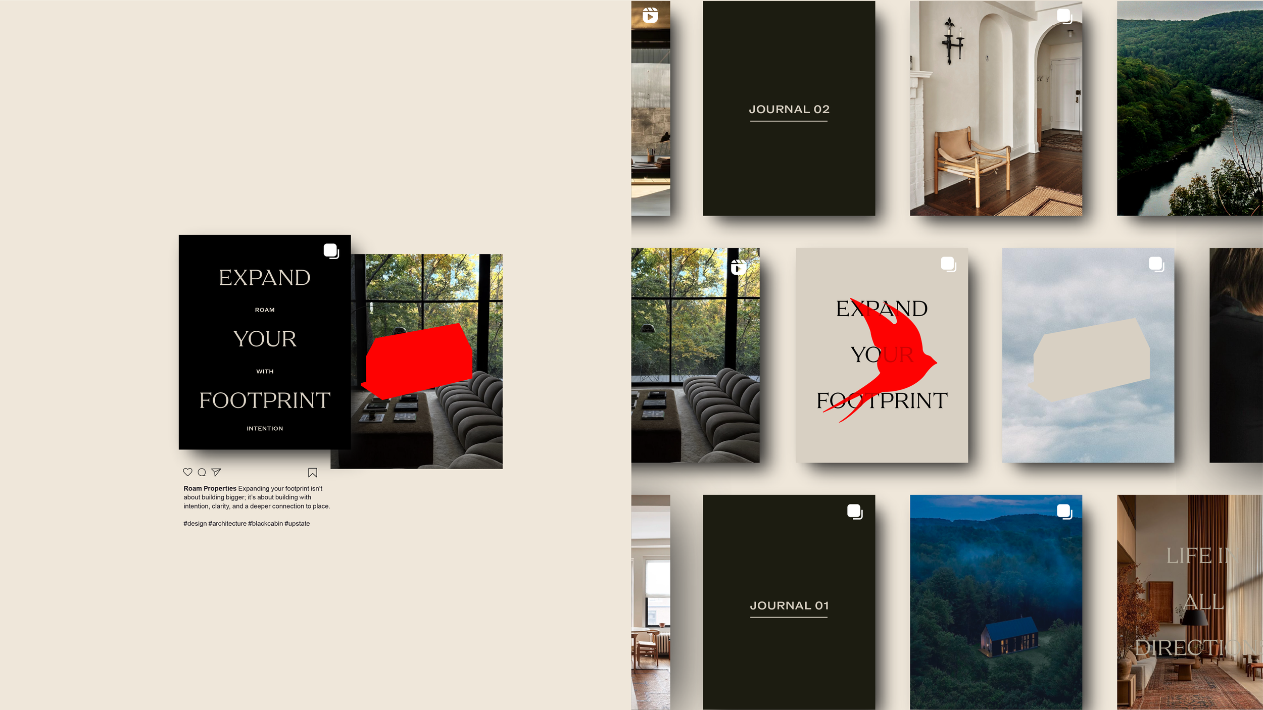 For Roam, we developed an identity rooted in the intersection of landscape and construction — where architecture does not compete with nature, but frames it. Roam is not simply about owning a second home. It is about inhabiting movement. Belonging across geographies. Living in more than one place without fragmentation.
